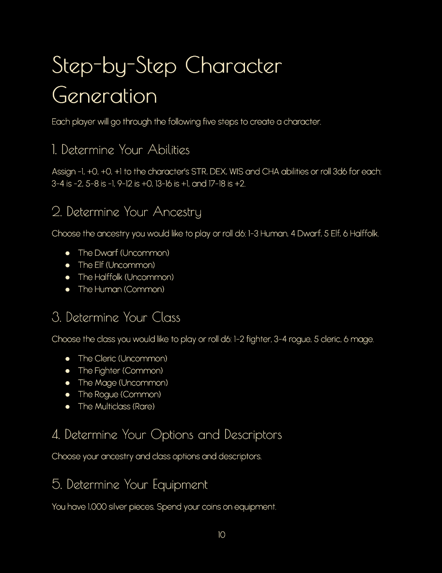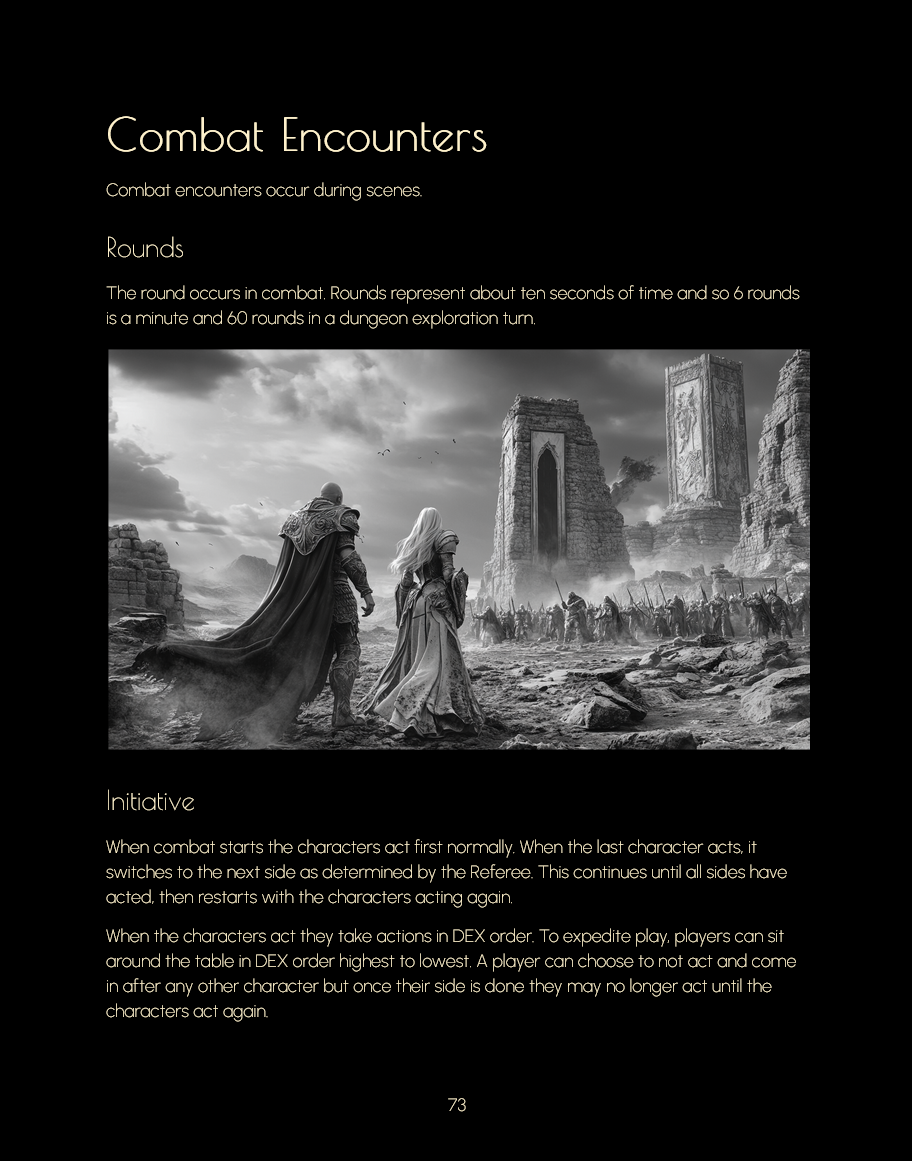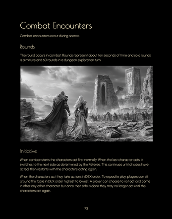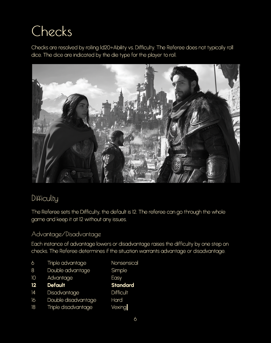 - 8 Parts: Core Rules, Character Creation, Goods and Services, Referee Rules, Spells, Magic Items, Monsters and Appendix