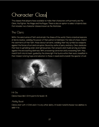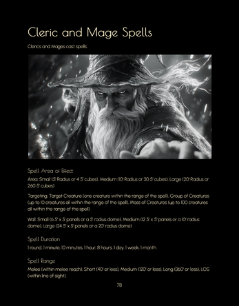 - Spells written by tiers and most available to mage with cleric picking based on domains